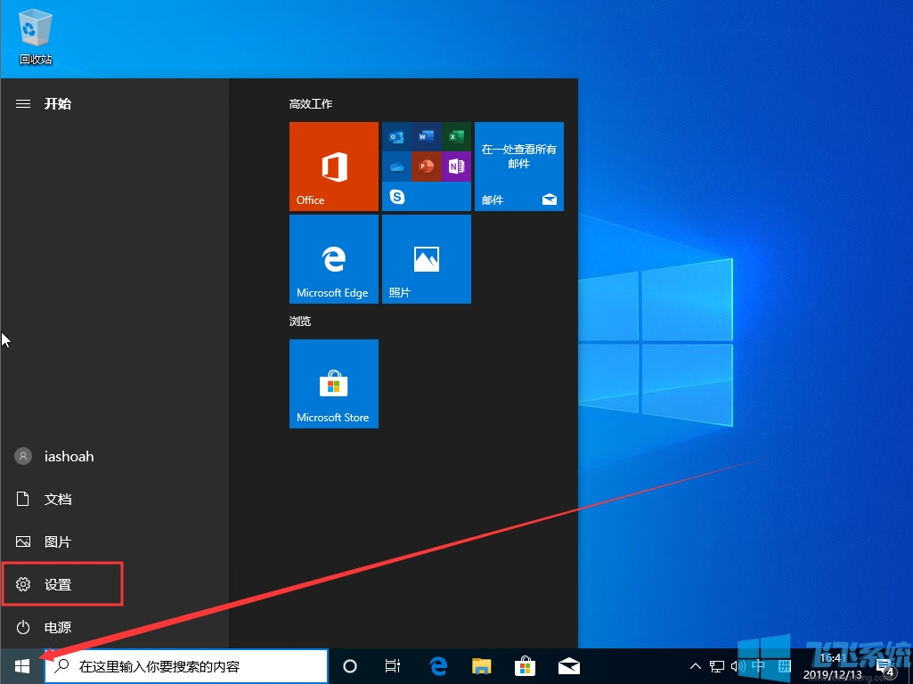 1、进入Win10 1909系统的设置页面;