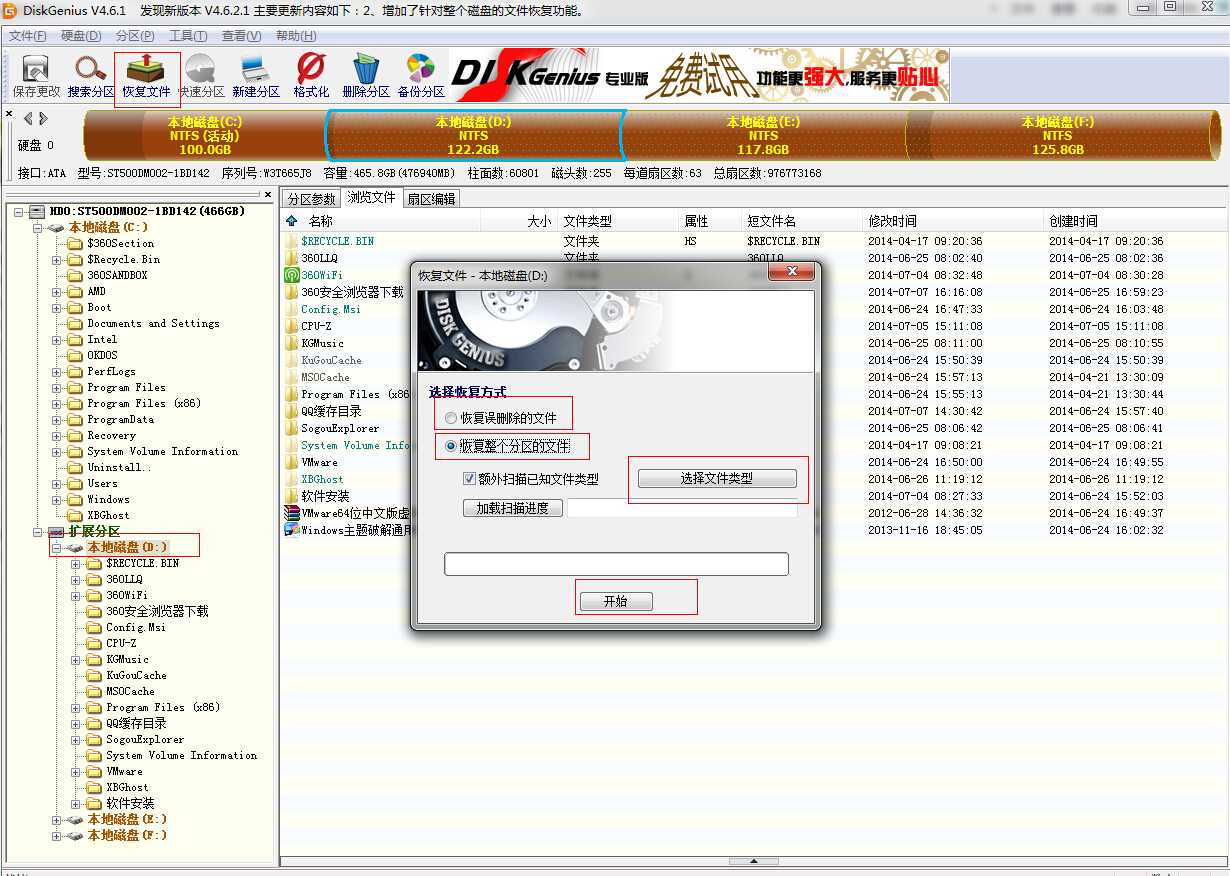1、启动U盘,进入PE系统。打开PE系统桌面的分区大师,就是数据恢复软件diskgenius。单击该列上的“恢复文件”,然后选择磁盘驱动器。如果用户不小心删除了文件,也可以选择恢复误删除的文件。当然,重装系统丢失数据后,我们应该选择恢复整个分区的文件。此外,我们还可以自定义恢复文件的类型。