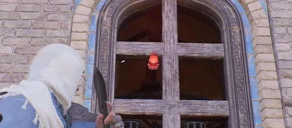 4、顶层房间有一盏吊灯。我们用一把飞刀穿过窗户把它击倒。