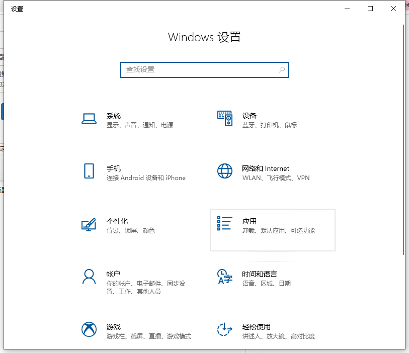2. 在打开的设置窗口中,单击下面的应用程序功能。
