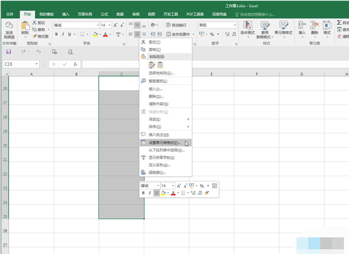 双击打开需要设置的Excel表格,选择需要设置的数据区域,按Ctrl+1,或者右键单击子选项中的“设置单元格格式”;
