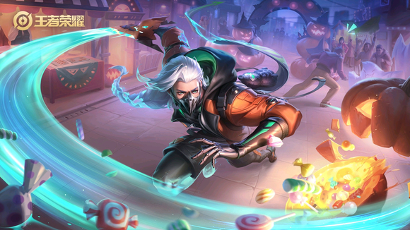 4、这款皮肤和元芳的黑猫爱糖一样万圣节主题,有标志性的南瓜灯和鬼魂服装。