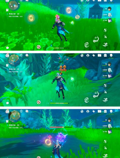 支撑区域之间会有一个加速圈。在图1中,你需要击败敌人才能获得道具。图2中,获得怪物后可以直接前往出现的怪物。在图3中,需要清理异物才能完成解密并获取异物。