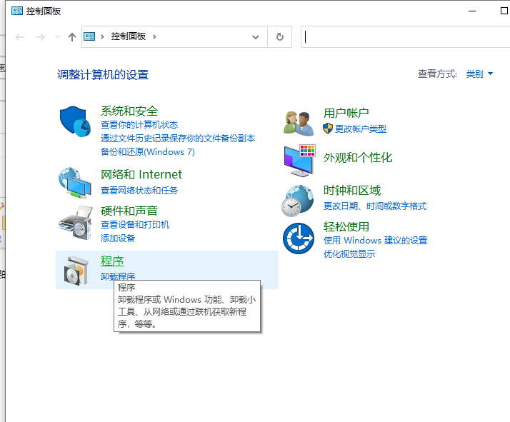 1. 打开控制面板,单击程序,选择一些不需要的软件进行卸载。