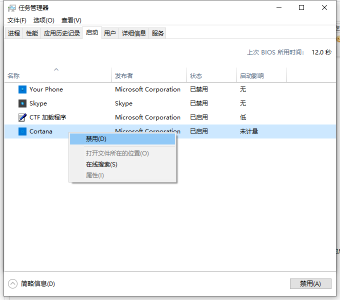 2、在弹出的系统配置窗口中,点击上面的启动项选项,点击打开任务管理器,然后选择禁用一些您认为不需要的启动项。