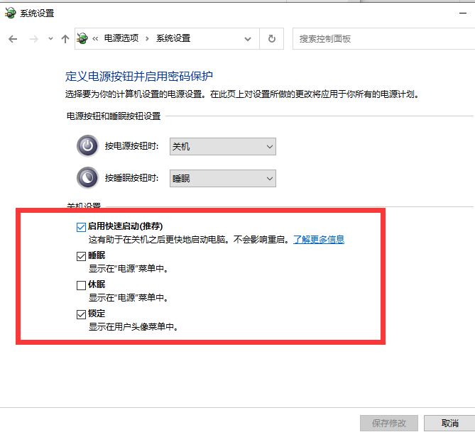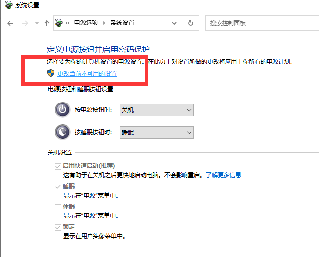 4. 单击上面的“更改当前不可用的设置”链接。勾选“快速启动”上的框表示它已启用!