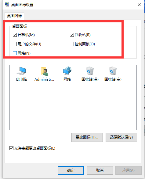 右键桌面进入个性化窗口,在主题选项中找到桌面图标设置,在桌面图标设置中找到想要显示的系统图标,勾选确定。