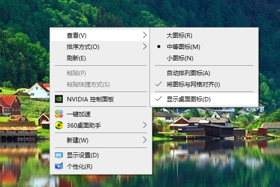 这时候,很有可能桌面图标被隐藏了。鼠标右键进入查看选项,勾选显示桌面图标即可解决问题。