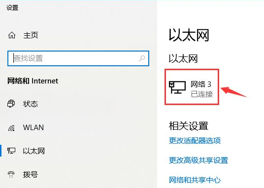 2、我们进入当前的以太网接口,再次点击当前的【网络】。
