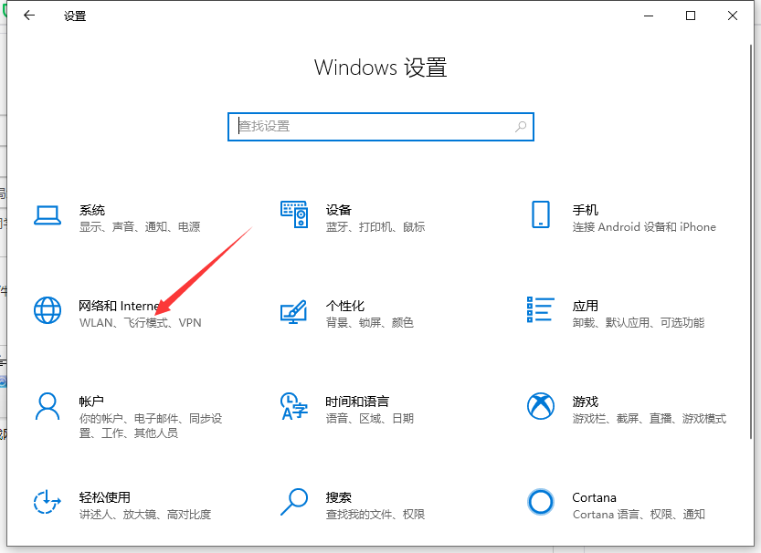 1. 使用“win+i”打开计算机设置,然后单击网络和互联网。
