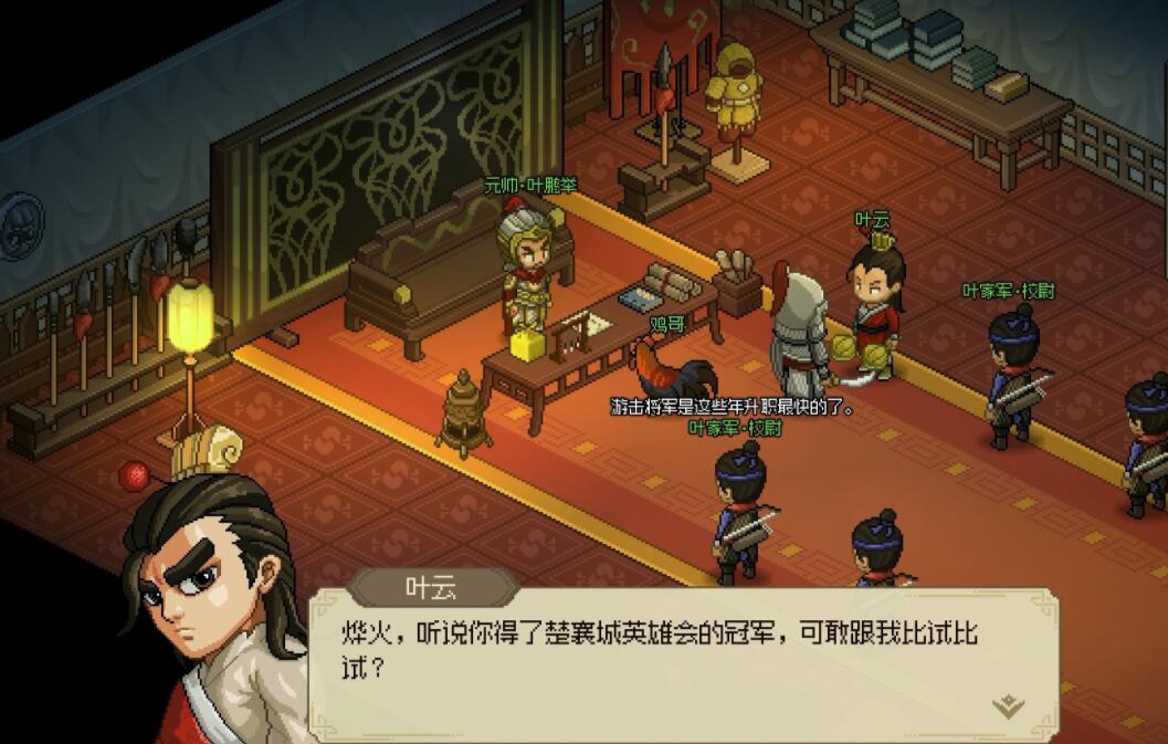 4、挑战完水寨所有人后,回到叶家军大厅即可邀请叶云加入队伍。