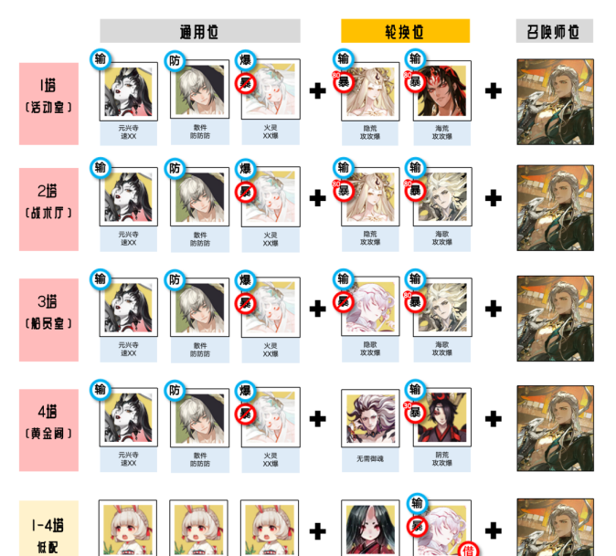 6、阴阳师黄金夜飞行金阁攀登塔阵容如下: