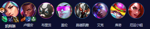 凯特琳、卢锡安、布利茨、盖伦、莫德凯撒、艾克、科奇、厄运小姐