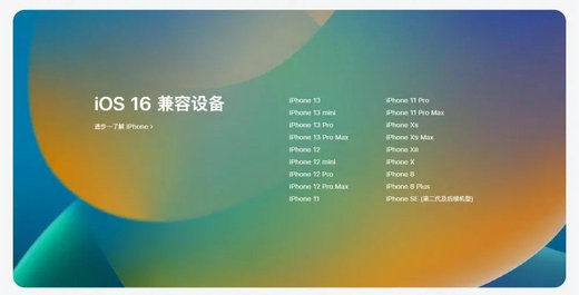 苹果公布了兼容iOS 16版本系统的机型列表。所有最新型号都支持这一点。简而言之,iPhone 8及其之后发布的机型都将获得iOS 16系统更新。老款机型中,iPhone 6s系列、iPhone 7、iPhone 7 Plus以及第一代iPhone SE不具备新系统资格,将始终停留在iOS 15版本。