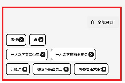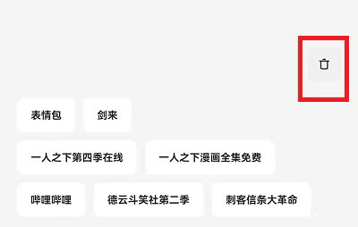 3、这里需要点击搜索记录右上角的【垃圾桶】图标,就会出现删除按钮。