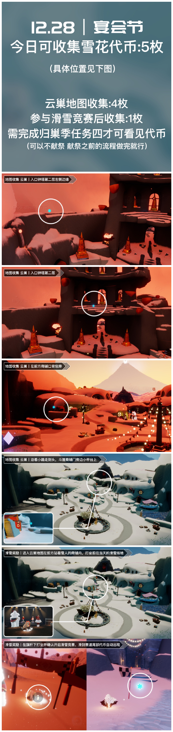 光遇宴会节雪花代币12.28收集位置在这里跟大家分享一下。雪花代币的收集是一个漫长的过程。每天只有5个代币。如果玩家想收集足够的代币来兑换自己想要的物品,记得每天搜索并收集它们。小编为您整理了12月28日最新的雪花币领取地点。