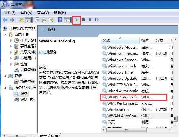 3、然后在窗口右侧找到“Wired AutoConfig”服务和“WLAN AutoConfig”服务,点击上面的“启动服务”按钮启动它们。