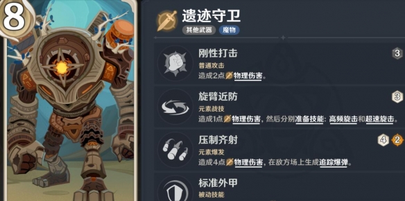 遗迹守卫:也就是大家常说的“铁甲小宝”。其基本战斗技能是多级伤害。如果吃了这个关卡的增幅buff,
