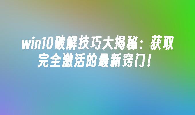简介:Win10操作系统是目前使用最广泛的操作系统之一,但正版激活过程相对麻烦。很多人希望找到破解技术来获得完全激活的状态。本文将揭秘Win10破解技术的秘密,提供最新的技巧和使用案例以增加说服力。