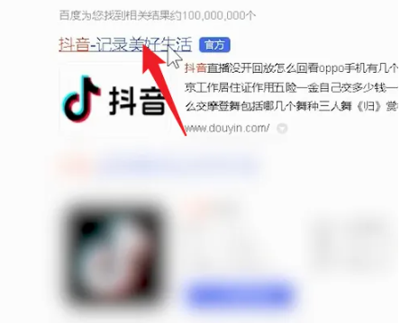 1、在搜索引擎中输入抖音,点击抖音官网如图。