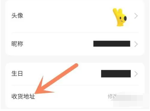 2、然后在个人信息界面,点击如图所示的收货地址。
