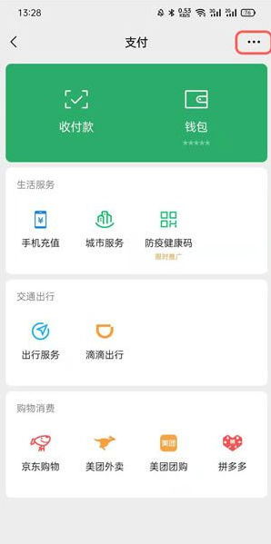 2、我们进入微信支付界面,点击右上角的三点按钮。