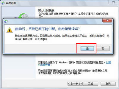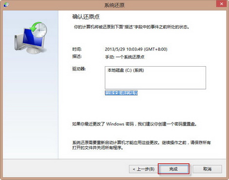 6、在“确认您的还原点”中,点击“完成”。如下图: