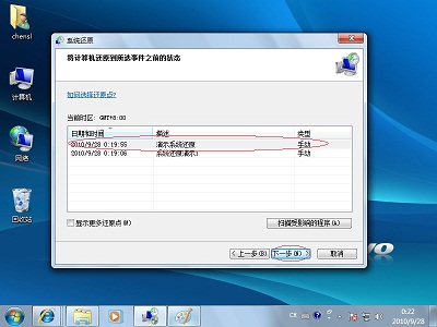 5、选择一个具体的还原点,点击“下一步”。如果是用户手动创建的还原点,“类型”为“手动”。如下图: