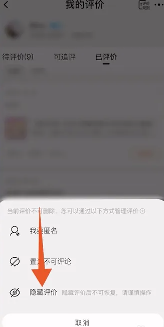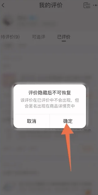 6、最后我们点击确定隐藏评价,相当于删除评价。