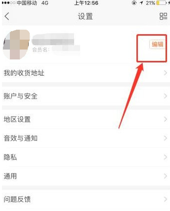 2、然后在设置界面中,点击右侧的编辑,如图所示,进入个人信息设置界面。