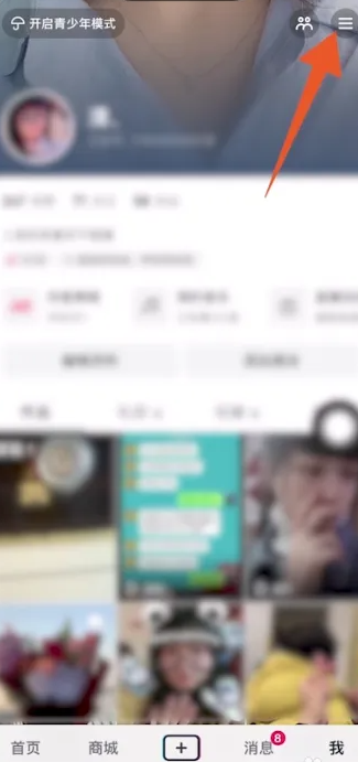 2、我们点击个人界面右上角的三栏。