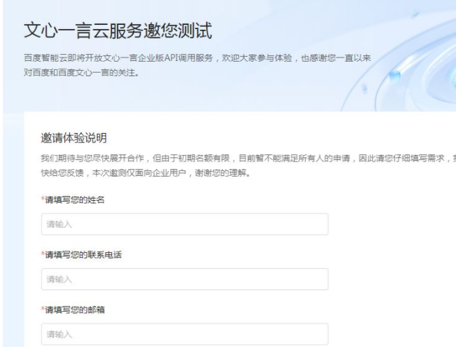 内测申请入口地址:https://cloud.baidu.com/survey_summit/wenxin.html