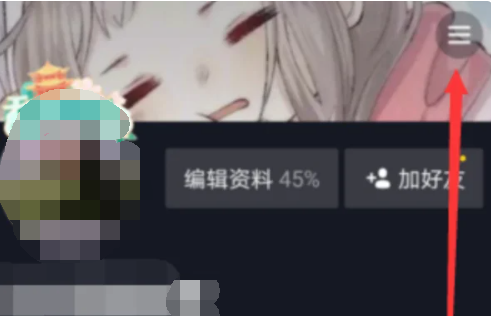 2、然后我们进入个人界面,点击右上角的三栏图标如图。