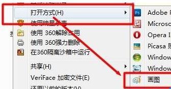 2、右键单击文件选项,将PNG图像文件用系统自带的画图板功能打开,如图所示: