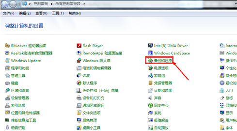 2. 在控制面板的众多选项中打开“备份和恢复”选项。