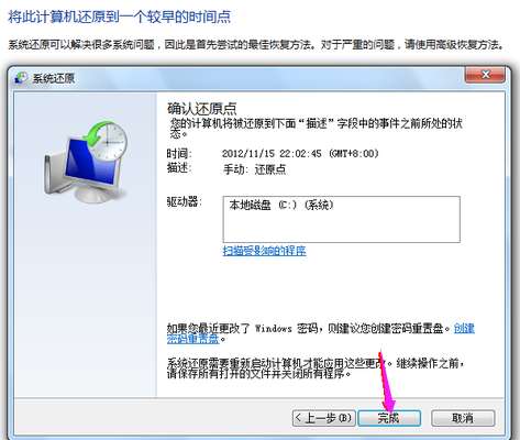 7. 上面显示有关恢复的详细信息。确保没有错误后,单击“完成”按钮开始系统还原。系统还原会重新启动,然后在启动过程中进入相关的还原操作。