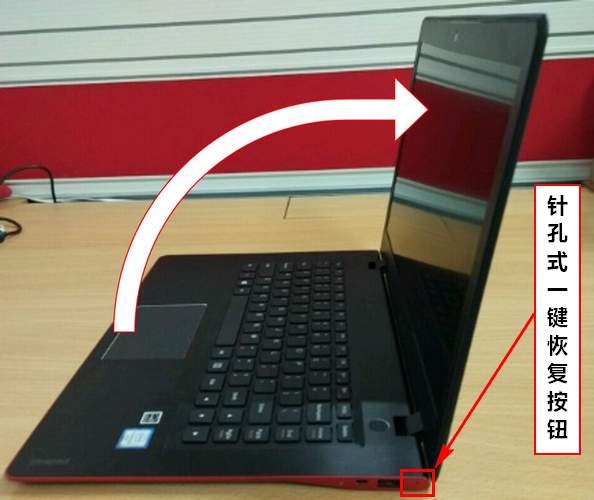 1、在关机状态下,按下一键恢复按钮(需确保笔记本屏盖在打开状态),以下示例图为ideapad 700s系列机型: