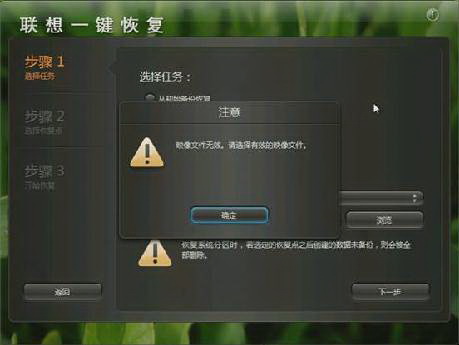 若用户没有备份过则会提示 映像文件无效提示