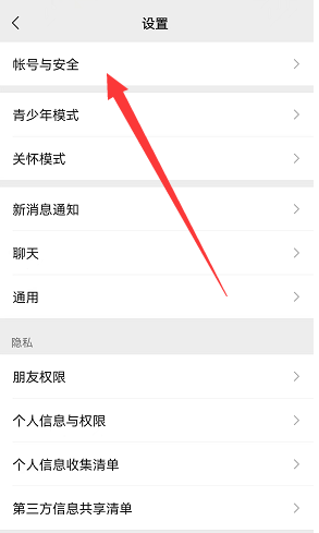 2. 然后在设置页面上,单击帐户和安全,如上图所示。