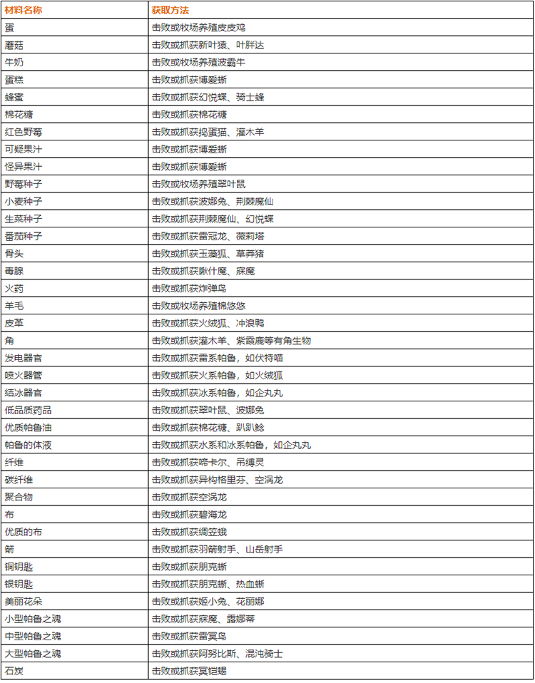 幻兽帕鲁全材料获取方法