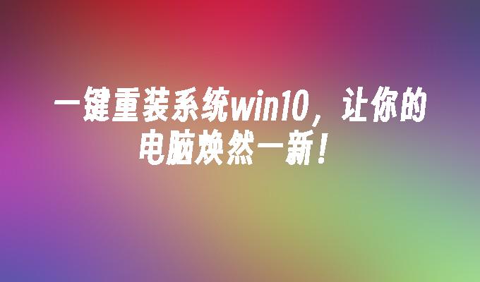 您是否遇到过电脑性能缓慢、系统崩溃等问题?如果是这样,那么您一定会对一键重装系统这个神奇的功能感兴趣。一键重装系统可以让您的电脑焕然一新,恢复出厂设置,解决各种问题。本文将介绍一键重装系统win10让您的电脑焕发活力的方法和工具。