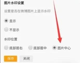 5、最后我们点击选择图片的中心,然后点击保存,将微博水印移到中间。