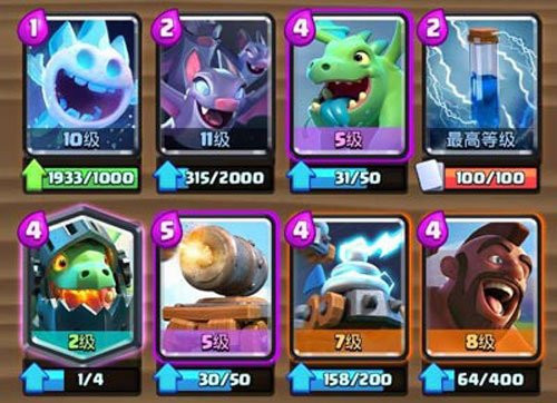 打法:在对方进攻的路线放下女巫清场,女巫快过桥的时候下巨人平推。炸弹人守人海,火枪手、哥布林、弓箭手防守+辅助进攻,骑士防守,火球备不时之需。