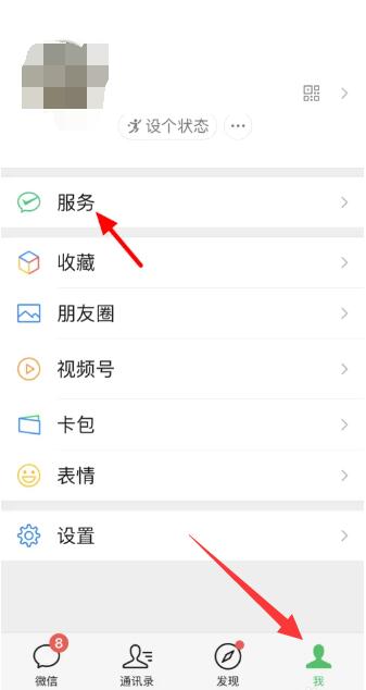 1、首先打开微信,点击右下角的我,然后点击服务选项。