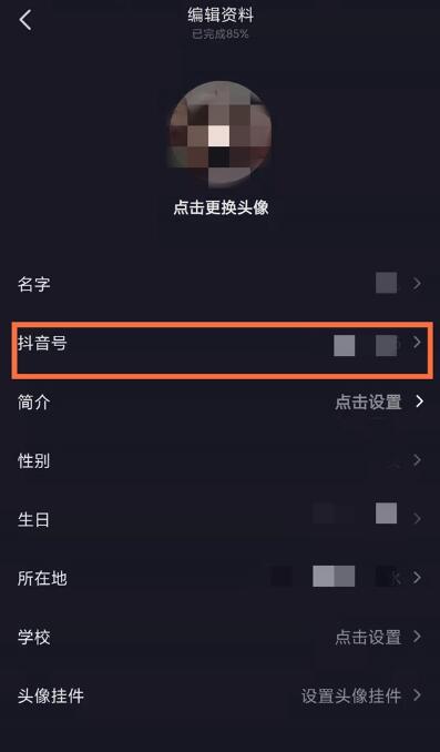 2.然后进入编辑信息界面,点击抖音账号,如图。