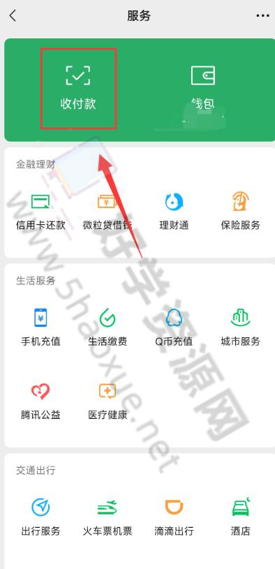 3、然后在服务界面中,点击收款与付款,如图所示。