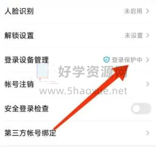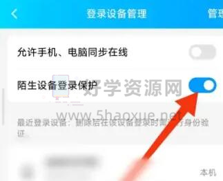 5、然后点击陌生设备登录防护右侧的切换按钮。