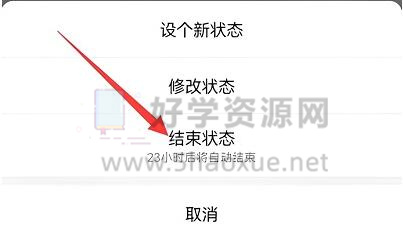 3、最后我们点击结束状态,关闭微信状态。 (设置微信状态24小时后将自动取消)