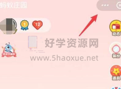 2.进入蚂蚁庄园后,点击右上角的三点图标。