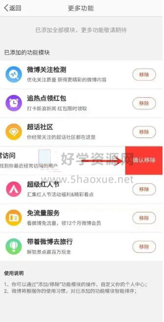 4、最后我们点击确认移除,关闭微博频繁访问。